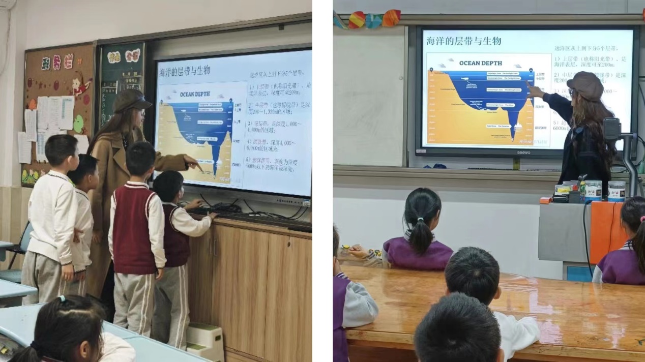 2023年11月7日、8日下午,生态与环境小课堂讲师团前往304永利集团附属紫竹小学、永德实验小学开展环教课,主题为“海洋生态问题”,担任本次课程的讲师为顾思雨和唐逸倩同学。