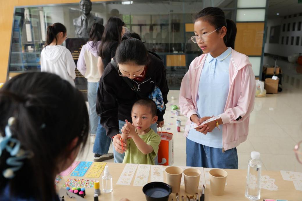 游园会活动结束后,小朋友们前往资环楼269室进行手工体验——玻璃画小夜灯活动。家长和孩子们一起调色、绘图、点缀装饰,小小的面板渐渐被五彩斑斓的颜色填满,制作出独一无二的小夜灯,为夜晚增添一份梦幻的氛围。