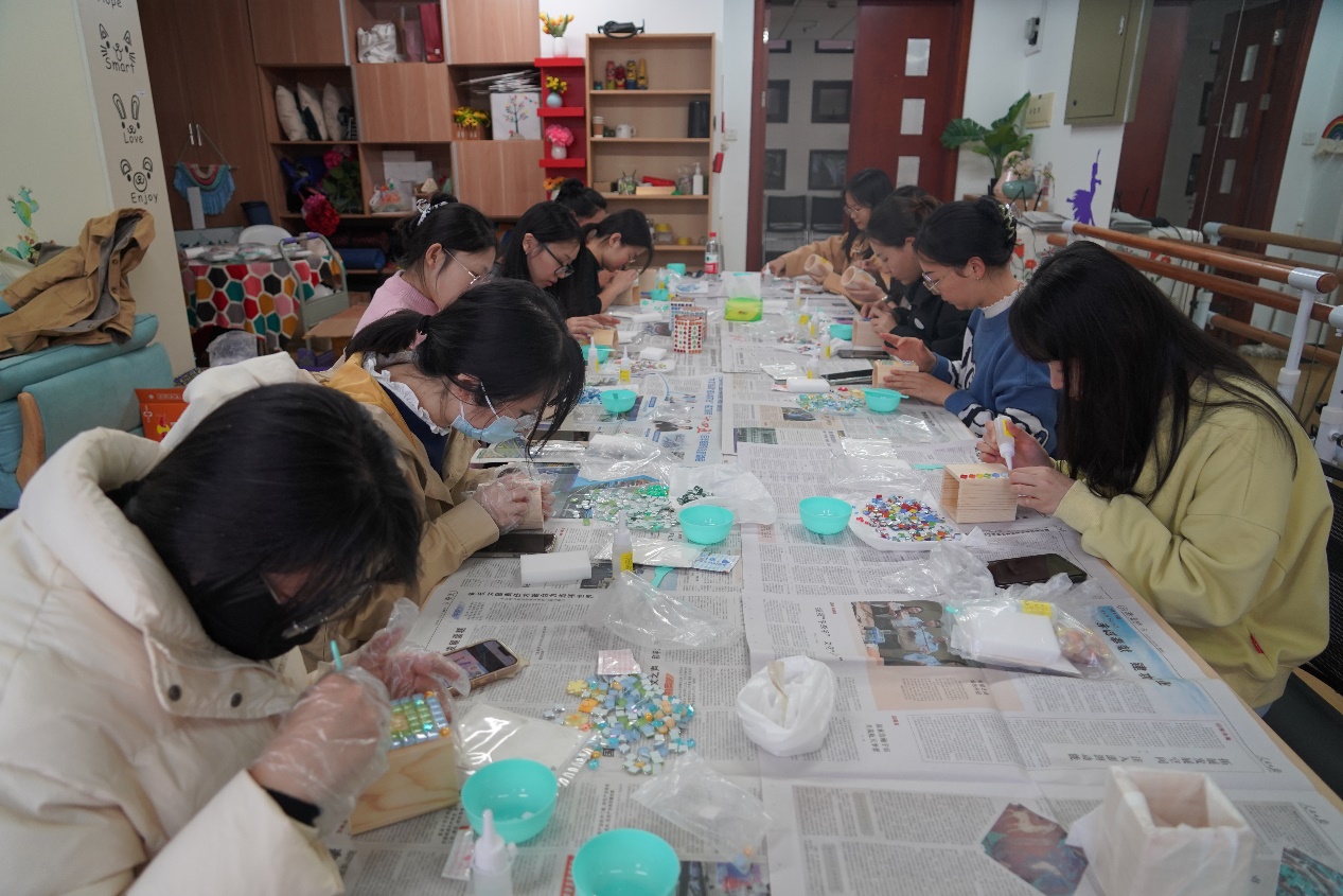 经过两个小时的制作,同学们将各种材料巧妙地结合在一起,DIY出一个个精美、独特的马赛克笔筒。本次活动的开展,不仅提升了同学们的动手能力和创新思维,使同学们感受来自员工社区的温暖,也可以让同学们在静心制作的过程中体会内心的宁静和专注,在活动中收获满满的成就感和幸福感。