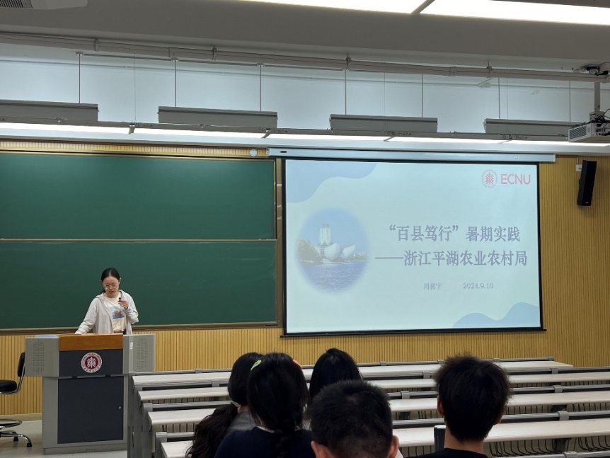 第四位分享嘉宾周馨宇则通过“百县笃行”于浙江省平湖农业农村局进行挂职锻炼。实习期间,她积极参与部门了多项任务,撰写了多份工作材料,发布多篇微信推送,更前往现场参与稻田退水零直排工程的考察工作。她强调实际工作中除了常规的文字撰写任务,更需要前往现场,了解实际情况,才能更好地开展工作。