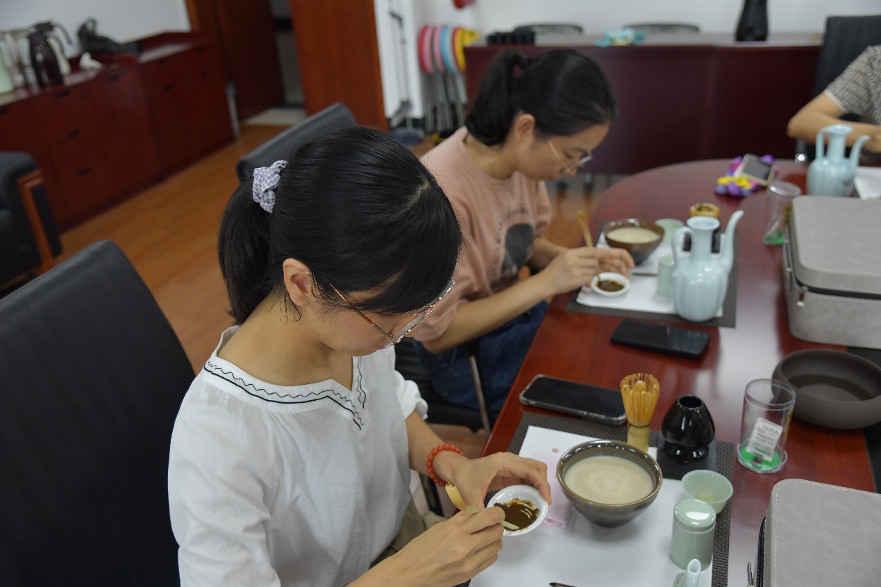 在快节奏的现代生活中,宋代点茶提供了一种静谧而优雅的生活方式。此次活动不仅让老师们亲身体验了宋代点茶的魅力,更激发了大家对传统文化的浓厚兴趣。一位参加活动的老师说“这次活动让大家更加深入了解了宋代茶文化的历史与内涵,在茶艺老师指导下一步步亲手体验,宛如穿越了千年时光,体验了宋人‘风雅处处是平常’的生活方式,是一次很特别的生活美学体验”。