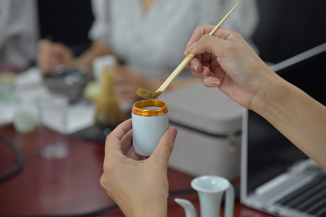 动手操作环节,茶艺老师首先展示了宋代点茶的传统工具及正确摆放位置,包括手执壶、茶筅、茶盏、茶匙等,并逐一介绍了它们的用途和制作工艺。随后,在茶艺老师的指导下,大家纷纷动手尝试制作宋代点茶。