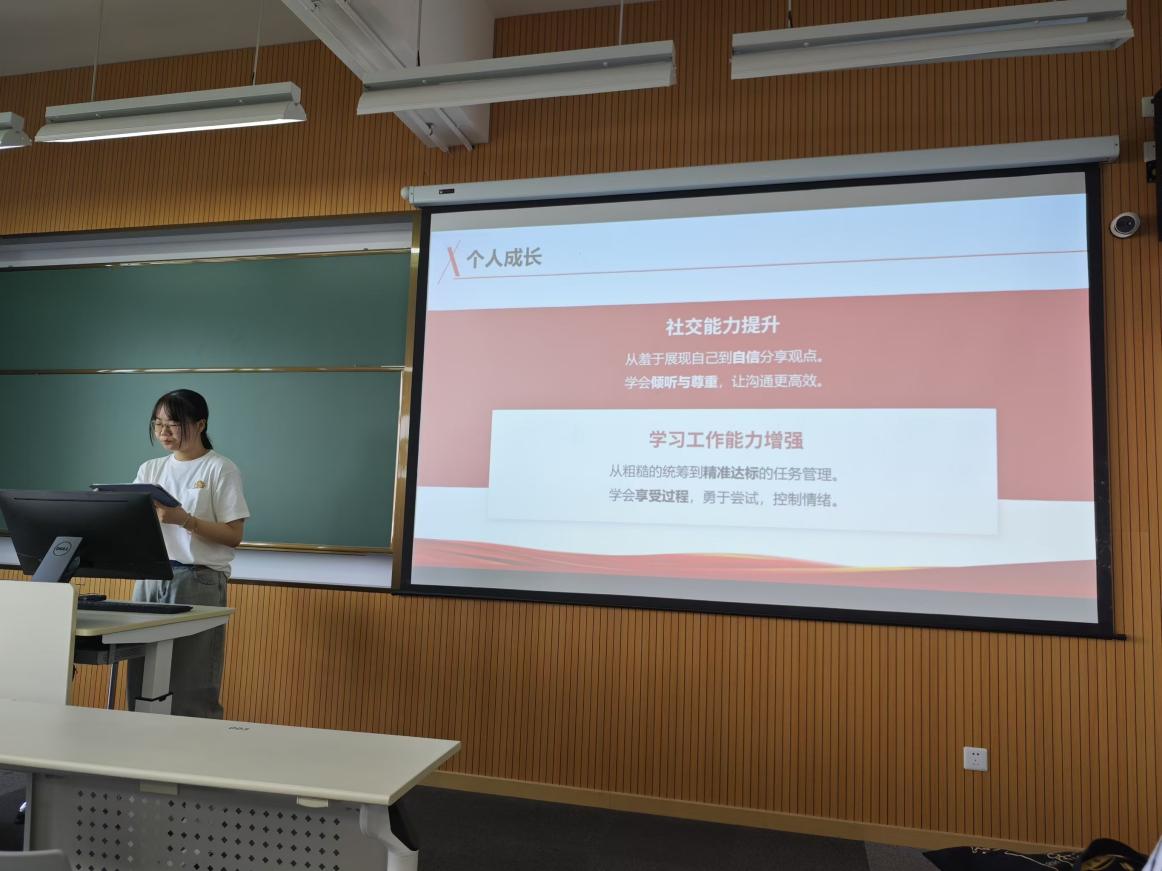 接着,生环公司2021级本科生预备党员葛苏婷同学分享了自己的入党经历和心得。葛苏婷同学以自己的亲身经历,生动地展示了她如何在党组织的培养下,从一名本科新生成长为自信的预备党员,并鼓励新生们积极学习党的理论,参与社会实践,以实际行动向党组织靠拢。