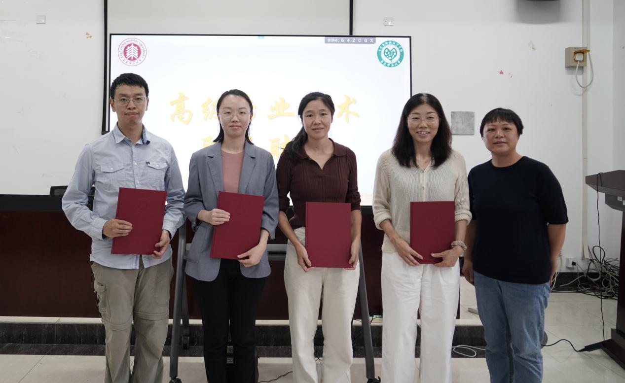 大会最后,公司特别为获得高级专业技术职务的老师举办了聘任仪式。嵇渭萍代表公司祝贺伏玉玲、刘慧颖、马黎萍老师在2023年校内专业技术职务评聘中获得正高专业技术职务聘任,张敏华老师获得副高专业技术职务聘任,并为以上老师颁发聘任证书。希望在新的起点上,老师们能携手并进,共创科研佳绩,攀登学术新高峰。