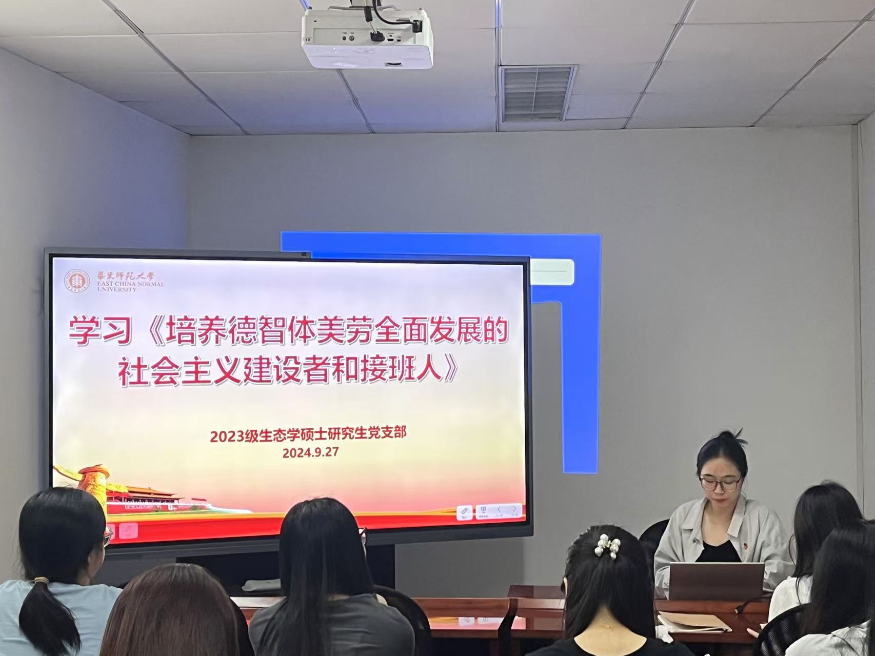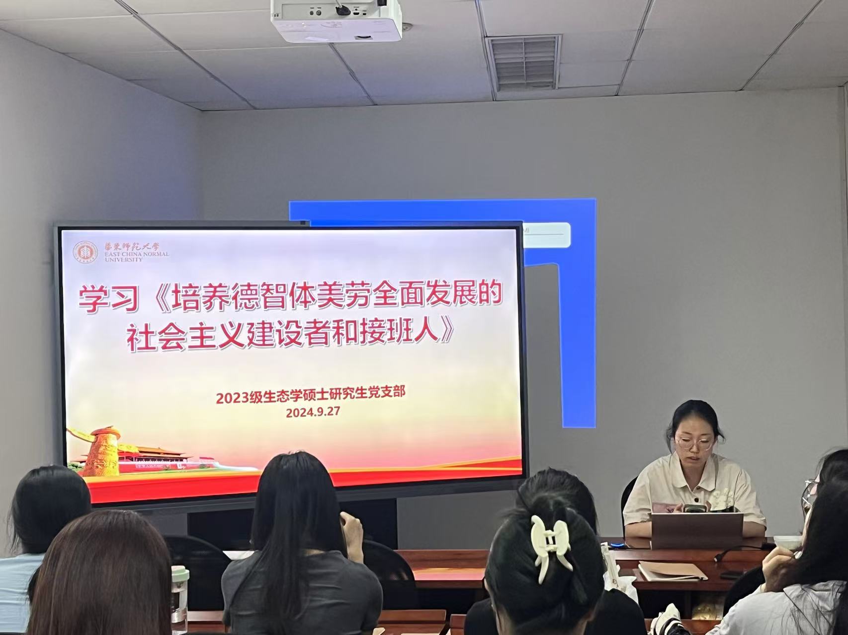 2024年9月27日,304永利集团2023级生态学硕士研究生党支部召开学习《培养德智体美劳全面发展的社会主义建设者和接班人》专题组织生活,活动由第三党小组主持。