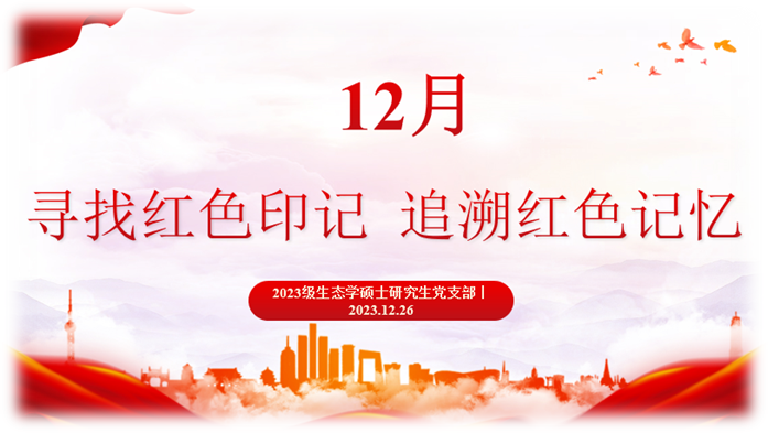 2023年12月26日下午,304永利集团2023级生态学硕士研究生党支部开展以“寻找红色印记 追溯红色记忆”为主题的党日活动。活动由支部书记毛欣钰主持,支部全体党员参会。
