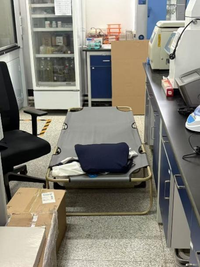 7 | 其他问题: (1)350室有员工睡觉; (2)418室、450室未贴危废区标志; | ![]() ![]() | 350、418、450 |