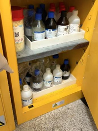 2 | 化学药品存储: 液体药品无防漏托盘;部分药品未贴码入库;有的防爆药品柜未落实双人双锁。 | ![]() ![]() | 132、244、246、336、348、418、440、442、448、466、辅楼302 |