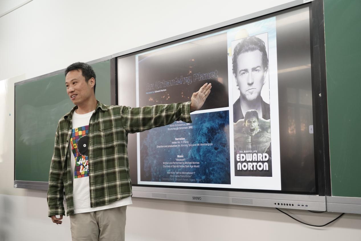 讲座以刘老师自己编导的视频《崇明故事·西沙剪影》为开篇,带领同学们领略了崇明岛的生物多样性,走进了刘老师在岛上的工作环境与研究内容。接着,他生动地讲述了自己的成长历程和工作经历,分享了生态研究中的有趣发现,并透露了自己作为科学顾问参与《舌尖上的中国》和《蔚蓝之境》等节目的幕后故事,让同学们对生态保护有了更深的认识。