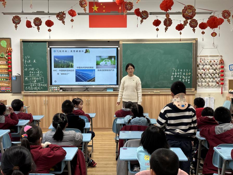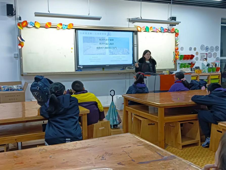 面对岌岌可危的生态环境,有识之士们早已开始行动。从巴黎协定到格拉斯哥气候大会间的游行,从植树造林到新能源的不断发展,讲师们介绍了人们为减少碳排放、重塑碳循环做出的种种努力。那我们又能为此做些什么呢?小朋友们纷纷举手发言,分享了许多身边的环保行动和绿色的生活方式,讲师们也一一给予肯定。最后,讲师们用丁仲礼院士的一番话为同学们敲响警钟——“保护环境其实是在保护人类自己”,从而呼吁同学们从身边的小事做起,共同拯救地球的未来。