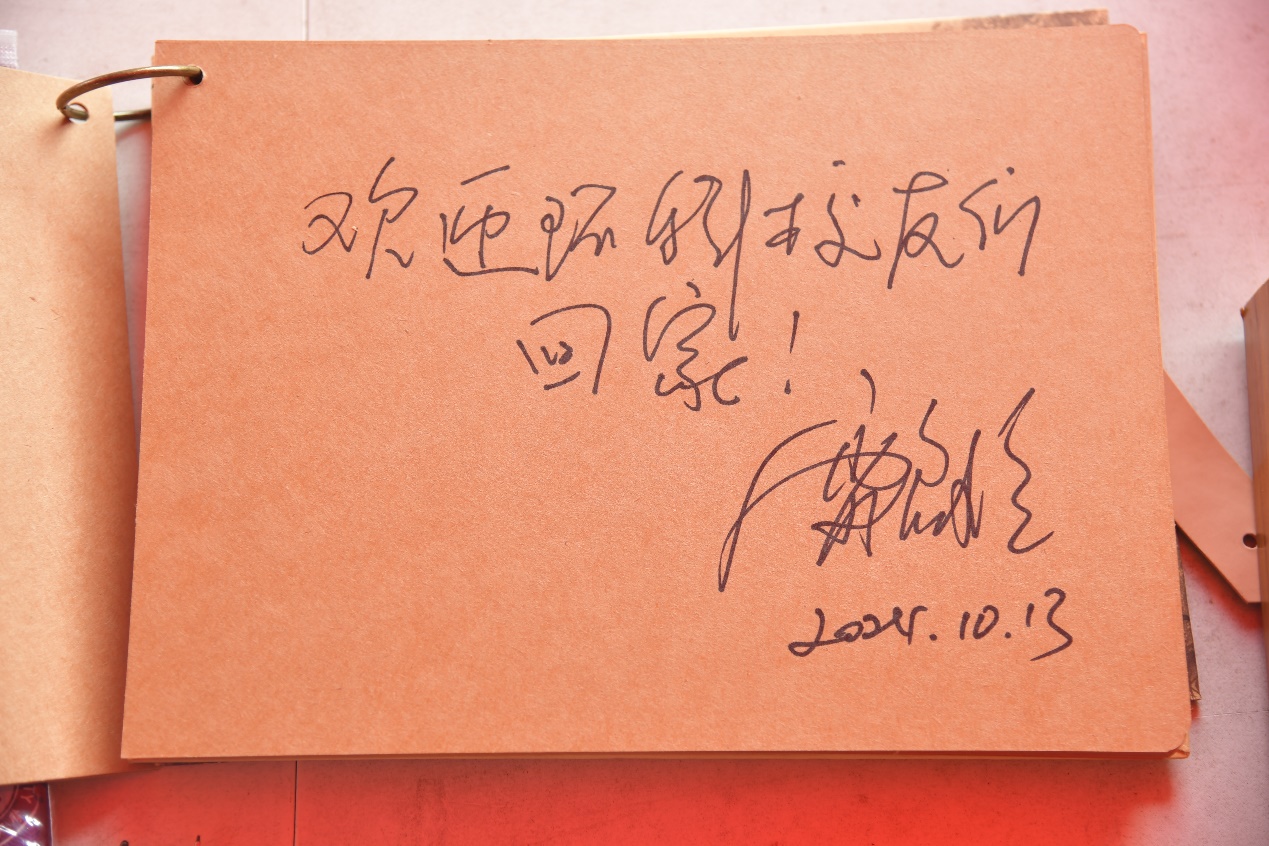 上午,员工们在文史楼前大草坪参加公司员工日启动仪式,公司党委常委、副董事长雷启立出席仪式并与员工亲切交流。雷董事长来到304永利集团的返校员工报到亭前,和员工们亲切交流,并在留言本上写下“欢迎环科员工们回家”。