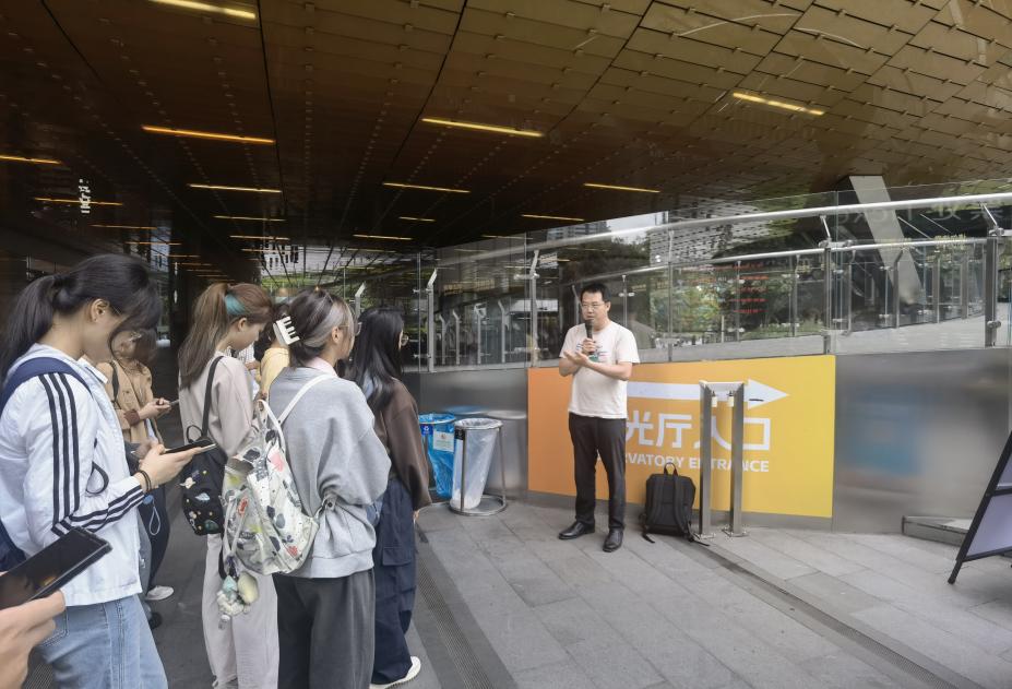 上午,同学们首先来到上海中心参观,张勇和徐倩雨老师为大家讲解了参观的注意事项并提出了自己家乡的水质与黄浦江水质的差异、苏州河和黄浦江水体颜色为什么有明显差别、高层废弃物如何处理处置等几个问题,随后建议同学们自行参观上海中心内部。
