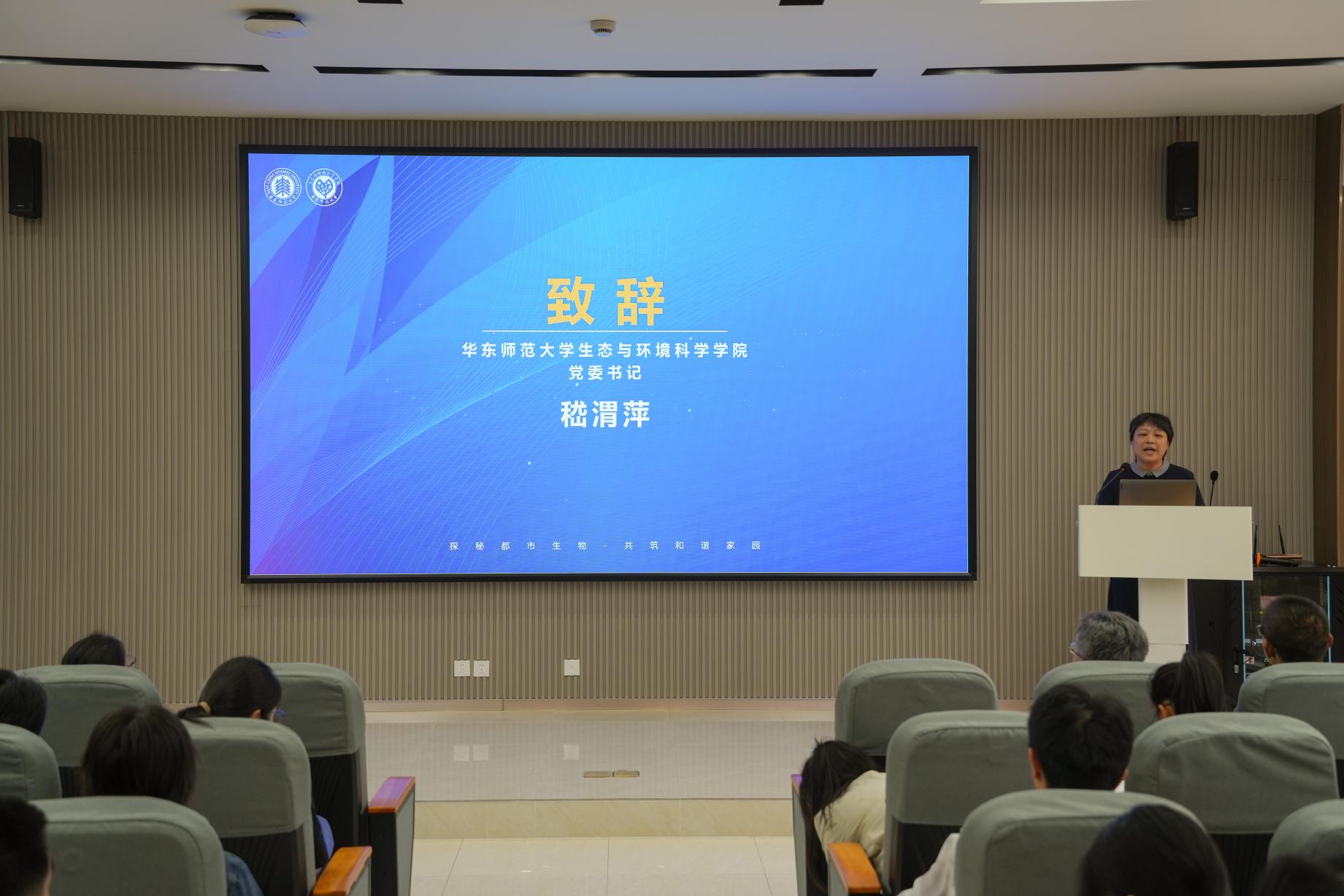 现场活动第二阶段由公司陈小勇教授和城市荒野工作室创始人郭陶然带来了两场精彩的科普报告。陈小勇教授以《城市在生物多样性保护中的作用》为主题,从专业视角深入解读了城市生态系统在生物多样性保护中的重要地位和独特作用,提出了一系列切实可行的城市生物多样性保护策略与方法,引发了同学们对城市生态问题的深入思考。郭陶然老师《在城市中重建荒野》的报告中,通过展示上海城市生物多样性恢复实践的多个实践案例,特别是本土植物群落重建,生动地向同学们展示了如何在城市环境中实现荒野的重建与生态系统的恢复,让同学们对城市生态修复有了更直观的认识。