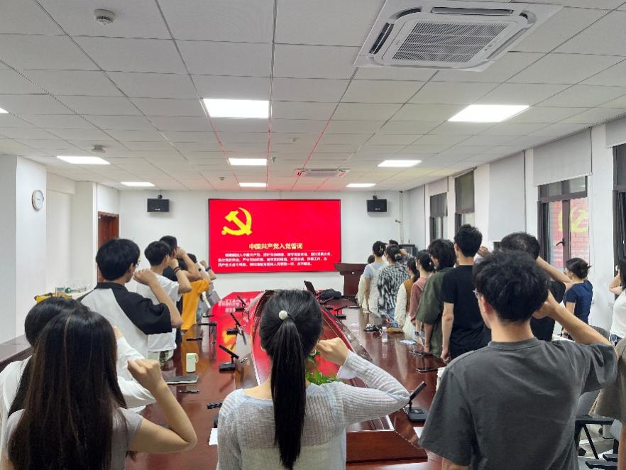 为了进一步增强党员的党性意识和责任感,党支部特别安排了重温入党誓词的环节。由彭铖同志领誓,全体党员面向党旗,举起右手,庄严宣誓。铿锵有力的誓言在资环楼269室内回荡,每一位党员都深刻感受到了作为一名共产党员的荣誉和责任。