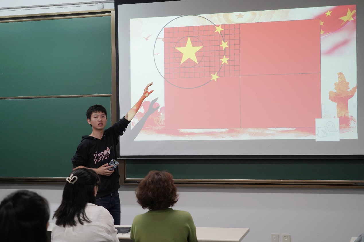 杨耀同学以《五星红旗:诞生与象征》为题,分享了国旗的诞生历程、三个有关五星红旗的故事,也简单介绍了国旗法和国旗的制法,并强调了五星红旗的象征意义。五星红旗不仅是中华人民共和国的象征和标志,更代表了中国人民的团结和奋斗精神。它激励着每一位中国人为了国家的繁荣富强而努力奋斗。
