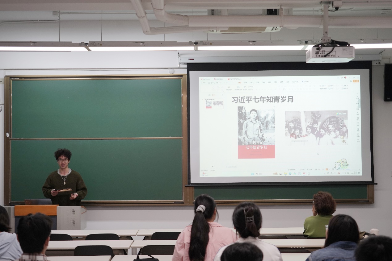 骆海龙同学分享了《习近平的七年知青岁月》这本书的阅读体会,其中看到习近平1974年在陕西梁家河插队的时候,在帮助老乡们建设沼气池的过程中,他会挨家挨户的去指导,详细了解百姓家里的情况,无论什么问题他都事无巨细的回答,时刻牢记着党员的宗旨:为人民服务,从群众中来到群众中去。