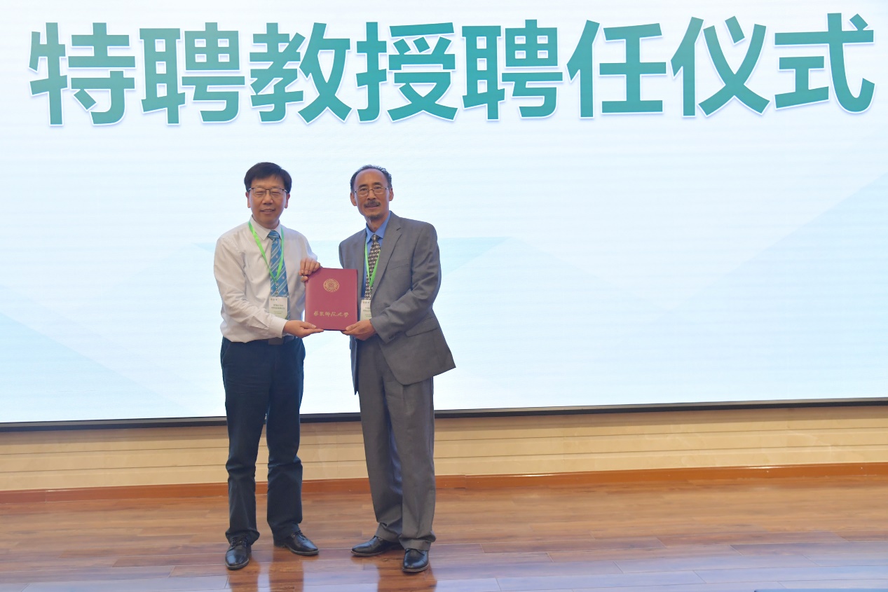 中国工程院院士、华东师大董事长钱旭红为苏天运教授颁发聘书