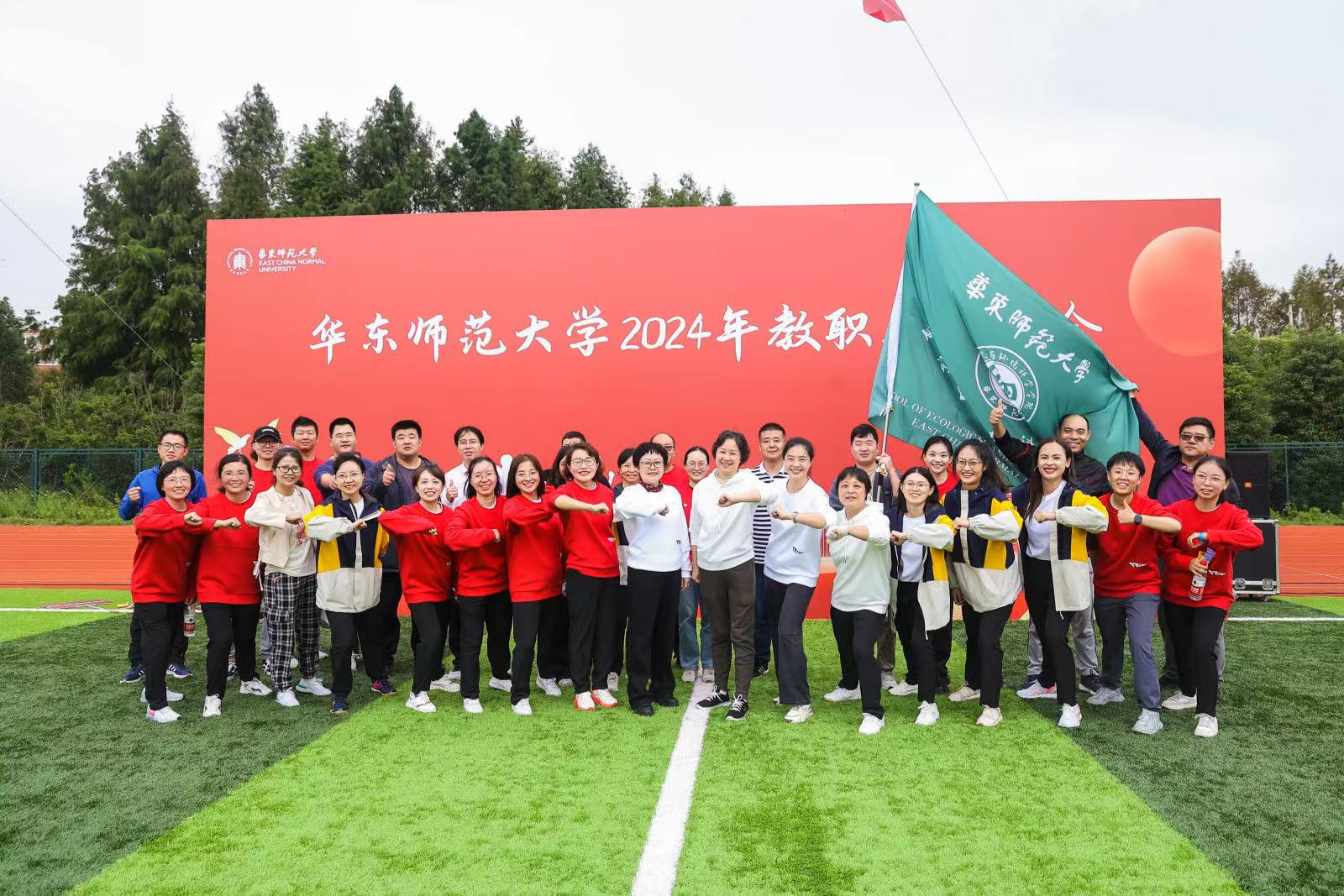 2024年10月22日,304永利集团运动会在闵行校区隆重开幕。在各院系入场式方阵展示中,手持彩色花球,迈着整体步伐的教师方阵最后一个登场。此次教师方阵由地学部教师代表组成,老师们手中的彩色花球先后拼出了“E” “C” “N”“U”四个字母,在齐声高喊“凝心聚力,团结奋进,追求卓越,引领未来”的口号声中,最后一个图形“ECNU”在花球的颜色翻转中精彩呈现,展现了华东师大教师们奋发向上、勇争一流的精神风貌。