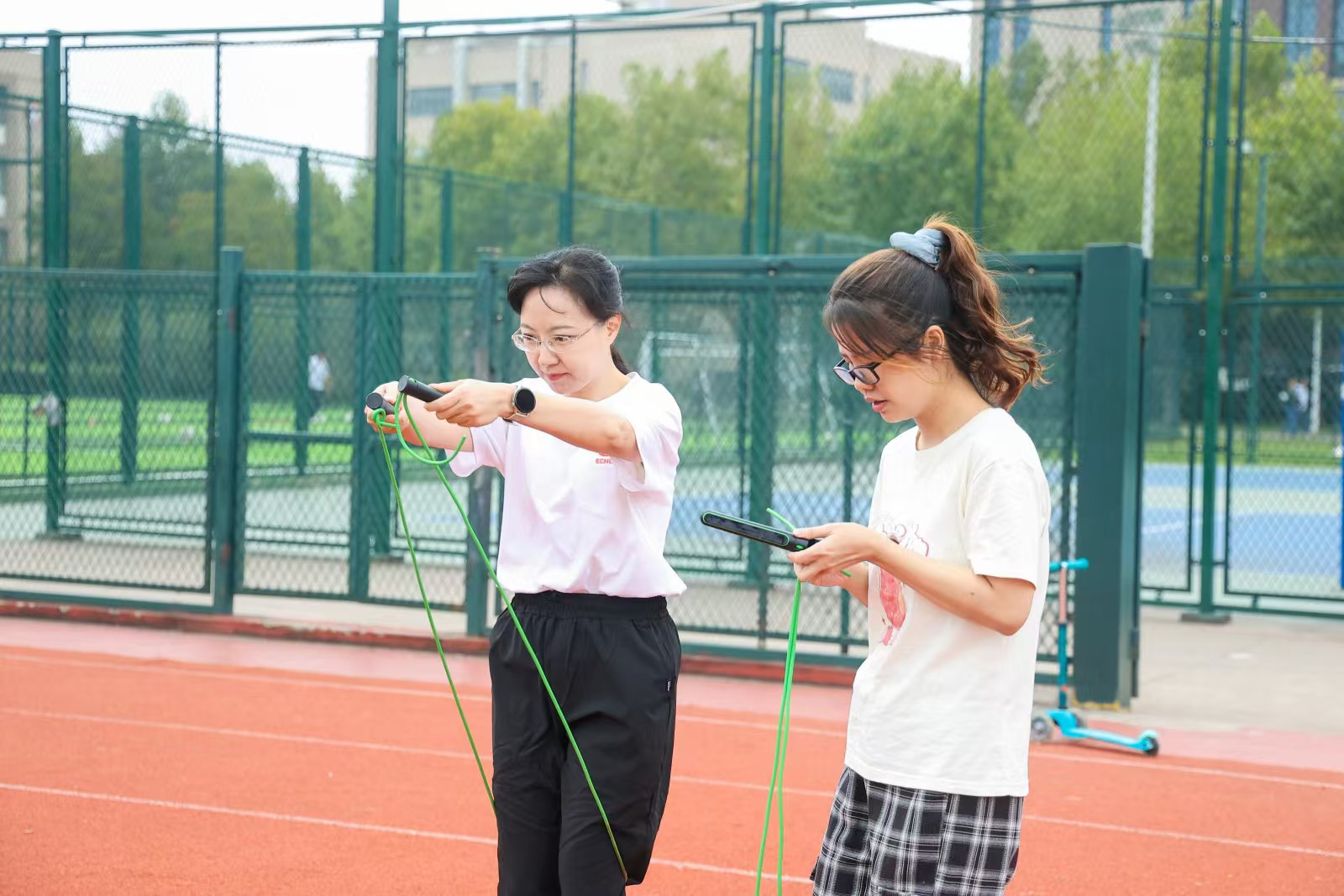 跳短绳比赛考验着团队成员每个人的技能和耐力,参赛老师们犹如轻盈的燕子飞跃在绳间。虽然生环公司未能在跳绳比赛中获奖,但老师们用拼搏与汗水充分展现了运动之美。