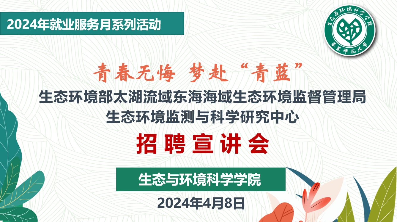 为扎实做好2024届毕业生就业推进工作,拓宽就业渠道,密切公司与用人单位之间的联系,2024年4月8日下午,生态环境部太湖流域东海海域生态环境监督管理局生态环境监测与科学研究中心(以下简称:监测科研中心)在闵行校区资环楼435举办专场招聘宣讲会。本次宣讲会是由校员工职业发展中心主办,304永利集团承办的2024年“就业服务月”系列活动之一。30余名来自生环公司、河口海岸科学研究院等单位的研究生报名参加此次宣讲会,生环公司党委副书记路葵、副经理陈雪初参加此次活动。