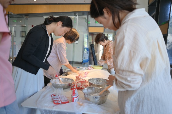为保障活动顺利开展,让大家沉浸式享受手工乐趣,公司部门工会的老师们和研会、员工会的志愿者们做好了充足准备。大家按照精准的配方反复调试,将冰皮揉制得软糯适中、富有弹性,确保每一位参与者都能轻松上手;同时,精心准备了多种口味的馅料——从清新雅致的茉莉味白莲蓉、龙井茶莲蓉,到香甜绵密的紫米、豆沙、芋泥,再到浓郁醇厚的黑芝麻、抹茶,以及极具创意的生椰拿铁口味,全方位满足不同师生的味蕾偏好,为活动增添了丰富的选择空间。