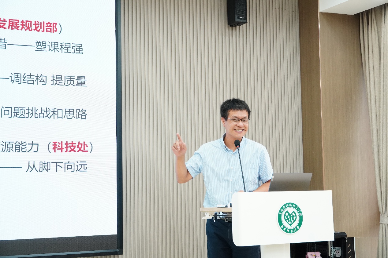副经理徐娟进行本科教学工作汇报,2026届本科生推免工作顺利完成,本科生斩获第七届全国老员工市政环境AI+创新实践能力大赛一等奖,《生态统计》、《长三角一体化示范区生态环境综合实习》两门课程获批上海市重点建设课程立项。徐娟提出下一步积极推动落实本科生导师制,为本科生在学业适应、专业认同和大学规划等方面给予指导。