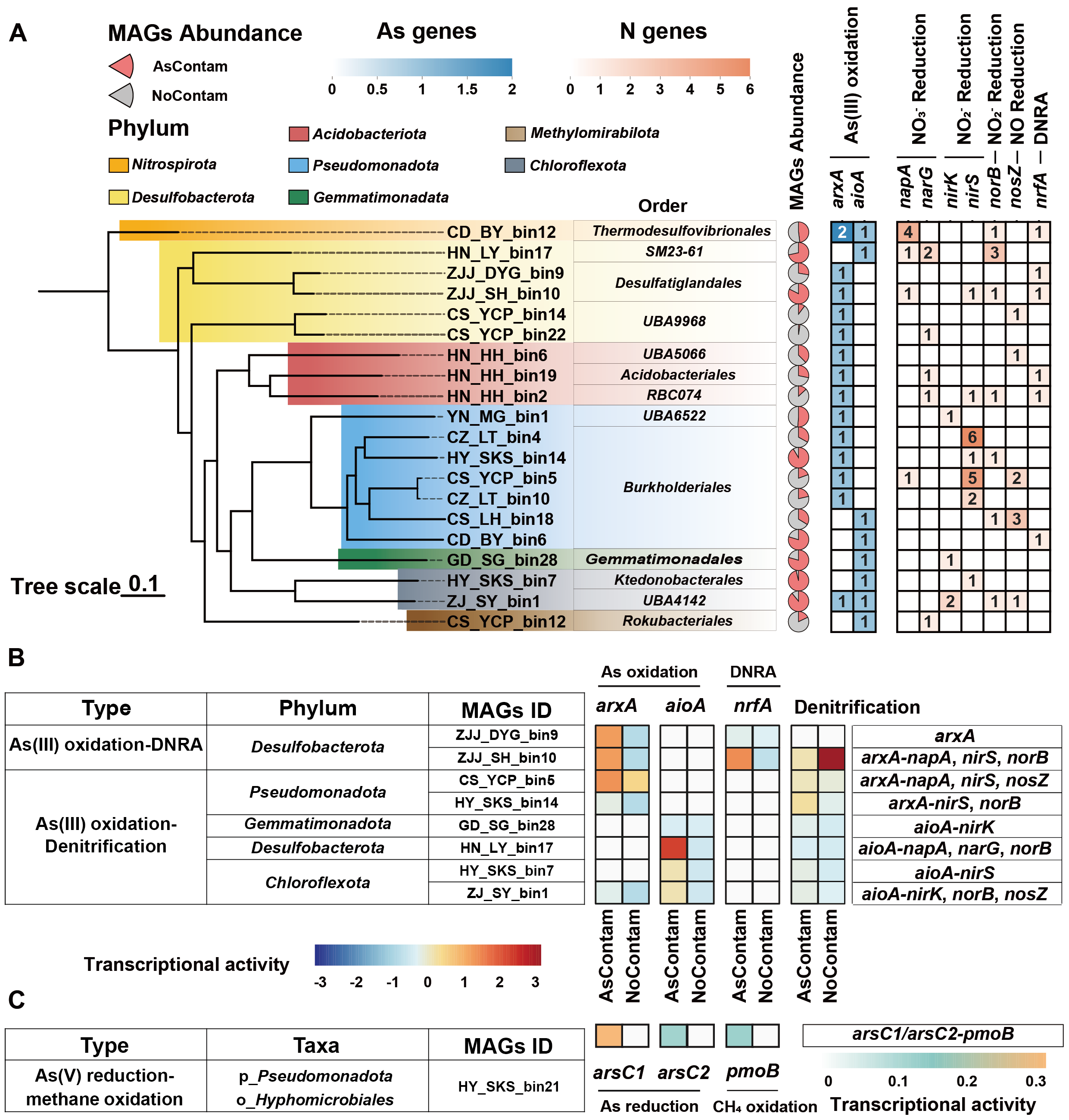 图3.砷氧化还原基因和碳氮代谢基因的耦合代谢潜力
