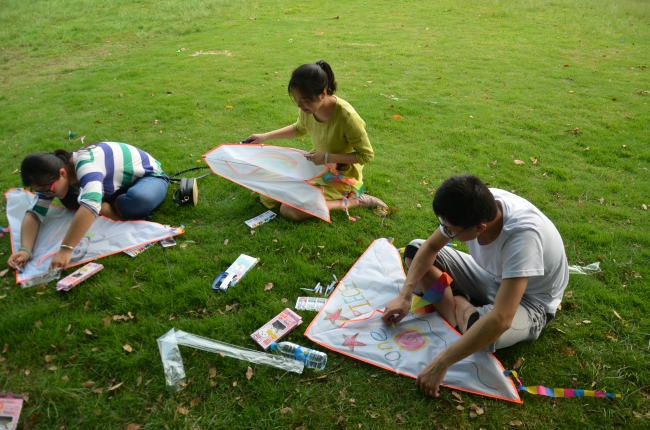通过各个院系形式多样而又具有带动性的前期宣传,各院系的同学们踊跃报名参加了此次活动。活动当天,来自不同公司、不同院系的同学们被分为若干小组,活动以组内联谊游戏和组间竞赛游戏展开,各小组同学能得到由主办方提供的风筝一枚,小组成员们对风筝进行现场DIY,制作出属于自己队伍的个性风筝。经过暖场小游戏后,大家怀揣着兴奋而又紧张的心情开始了风筝放飞的竞赛。竞赛过程中,各个小组内的人员分工合作,气氛欢快,一阵阵欢声笑语从上海交大草坪传来。最后,在大家的通力合作下,蔚蓝的天空中飘满了放飞的风筝。