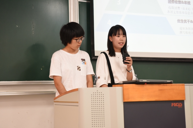 宣讲大会最后,路葵老师和吴丹老师也向17级同学介绍了生环员工会的历史,希望17级同学以员工会为平台可以更多与公司、专业老师接触,更好的适应融入老员工活。