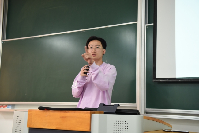 紧接着,各大部长依次上场,使出浑身解数为自己的部门“招兵买马”。宣传部的部长们拿出了最能证明实力的精美视频和时下最流行的快闪幻灯片;实践部亮出了以“实验室惊魂”为代表的众多广受好评的活动;组织部也展示了精心准备的活动回顾视频;学习部则以丰富的干货吸引了学弟学妹们的目光;新媒体部部长们采用了口述加展示微信推送的形式;体育部部长用自己的切身体会告诉大家加入员工会,加入体育部的各大好处;文艺部播放了前任部长们的寄语视频,以一段精彩的freestyle,在掌声中结束了自己的宣讲。O3社团及地学部辩论队也紧随其后进行了宣讲。2016级的赵晓萱同学提出组建生环舞团,并现场表演了一段舞蹈,将大会的气氛推向了高潮。